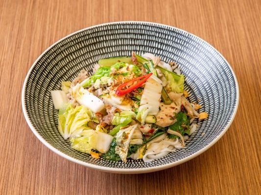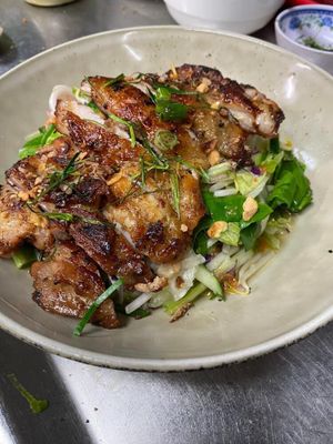 Gỏi Gà is a light and refreshing Vietnamese chicken salad featuring your choice of steamed or grilled chicken, served with crisp lettuce, juicy tomatoes, fragrant mint, and finely sliced lime leaves. Topped with crunchy roasted peanuts and dressed in a special sweet and sour chili fish sauce, this dish offers a perfect balance of freshness, tanginess, and texture in every bite.