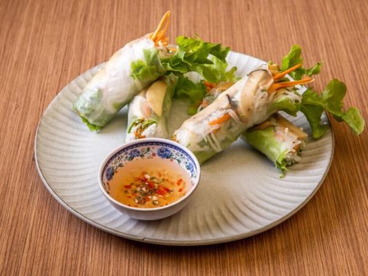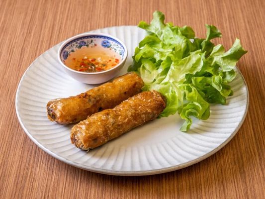 Crispy and golden-brown, deep-fried spring rolls are a popular Vietnamese appetizer made with a delicate rice paper wrapper filled with a savory mixture of ground pork (pork spring rolls) vermicelli noodles, shitake mushrooms, vegetables, and seasonings. They are fried until crunchy and served with fresh herbs and a tangy dipping sauce. We have two options with pork or vegetables (suitable for vegan options).