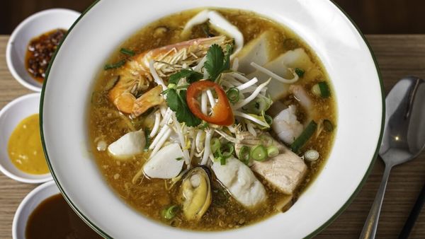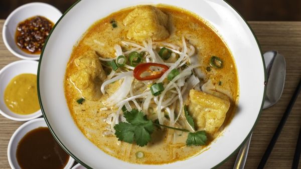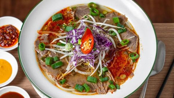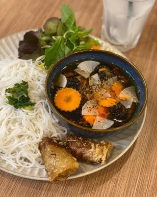 Experience the Vietnamese twist on the famous laksa with our Coconut milk noodle soup, where you can't go wrong with its strong flavors, perfectly balanced coconut milk, and a delightful mix of herbs that wake up your taste buds without the overwhelming spiciness.